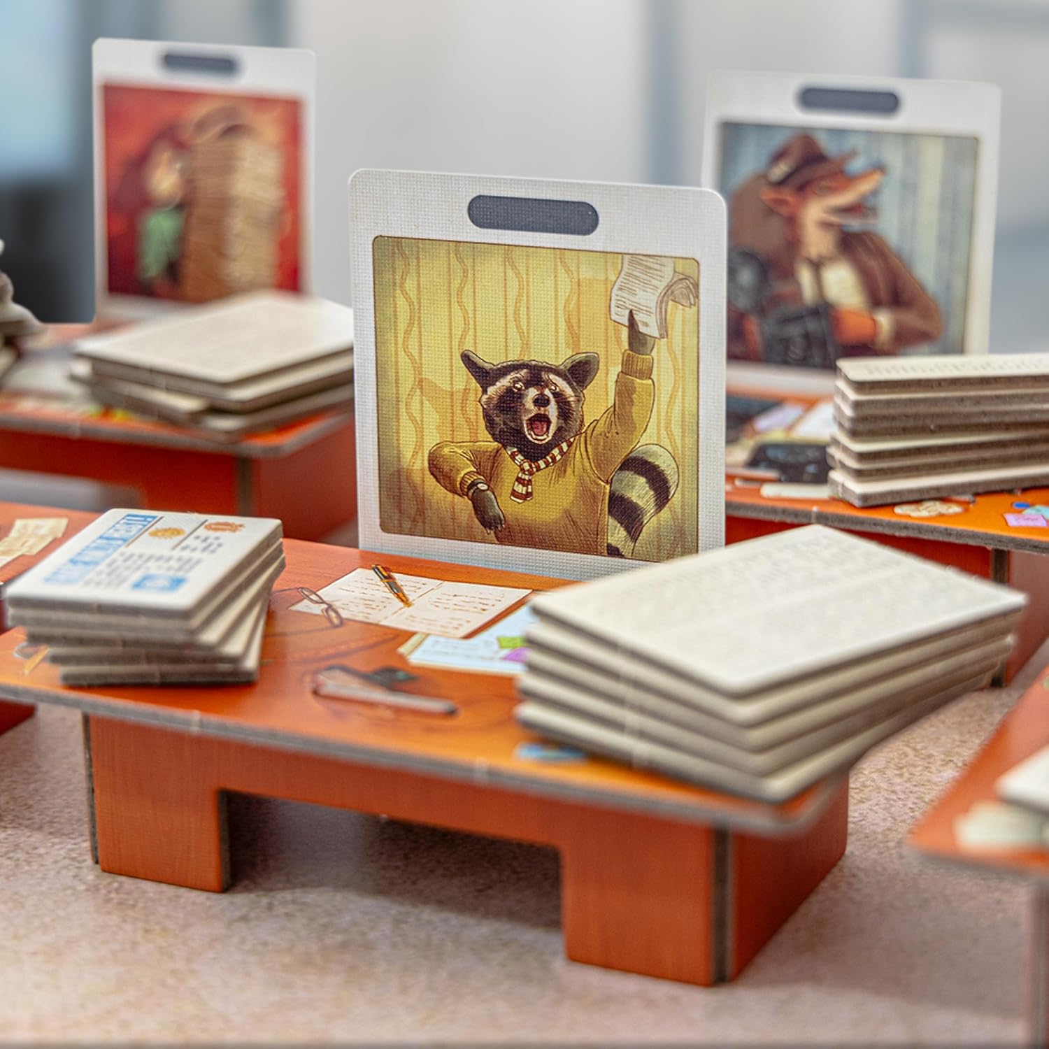 If real-time games aren’t your style, Fit to Print has a number of alternative modes to satisfy every type of puzzle gamer. In Slo-Mode players take turns drafting tiles from a shared market and arranging them on their front pages. In Puzzle Mode, take a specific set of tiles and piece together the highest-scoring arrangements. Whether you enjoy relaxing solo puzzles on your own, or frenetic action for up to 6 players, you will have a blast helping the critters of Thistleville tell their stories!