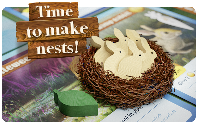 Rounds of the game move through the seasons, each season having its own thematic impact on the Biome. In the simultaneous gameplay phase, draw cards and collect resources to play a plant or animal into your Biome and earn points. Play your birds and rabbits next to plants, so that in Spring, they will make nests and have chicks and baby bunnies! But beware, in Summer, your opponents' predators are on the prowl. Protect your baby animals by playing more plants in each habitat. Earn points with successful hunts and by feeding your baby animals.