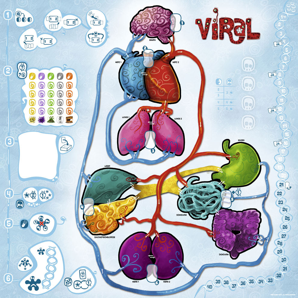 Im Kern ist Viral ein taktisches Mehrheiten- und Programmierspiel. Es gibt keine Glückselemente, nur das eigene Können zählt. Man muss in Form eines Virus die verschiedenen Organe des menschlichen Körpers befallen und mutieren. So erhält man Punkte. Zu Beginn einer Runde legt man immer Organe und Mutationen aus, um zu bestimmen wo etwas passiert und was. Für eine Runde sind ausgespielte Karten dann nicht nutzbar, anschließend kommen sie aber wieder zurück auf die Hand. Um sich im Körper zu bewegen muss immer die Flussrichtung beachtet werden.
